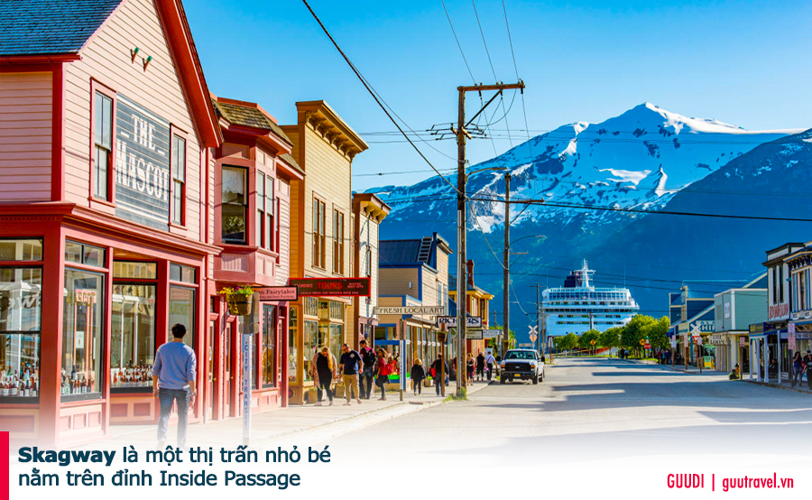 – Skagway: Skagway là một thị trấn nhỏ bé nằm trên đỉnh Inside Passage, nhưng nó lại tràn ngập những niềm vui. Các cửa hàng nhỏ, lối đi lát ván và nhà hàng nằm rải rác trên các con phố, đặt trong bối cảnh tự nhiên của những ngọn núi phủ đầy tuyết.