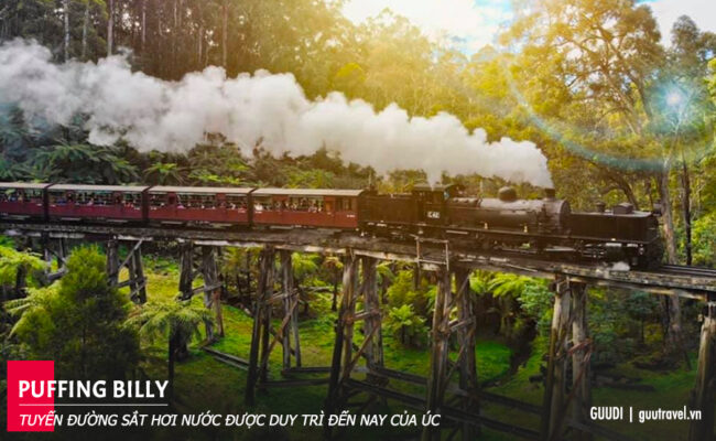 >> Tàu cổ hơi nước Puffing Billy: là một trong những tuyến đường sắt mang tính biểu tượng nhất của Úc được chạy trong rừng nguyên sinh. Hành trình tàu dài 24 km, đưa du khách qua những tán dương xỉ lớn xanh mướt, cây cầu gỗ độc đáo 200 tuổi vẫn còn nguyên vẹn. Thú vị nhất là tuyến tàu hoàn toàn “mở”, hành khách có thể ngồi đưa chân ra cửa sổ dọc 2 bên toa tàu, hít không khí và cảm nhận vẻ đẹp nơi đây.