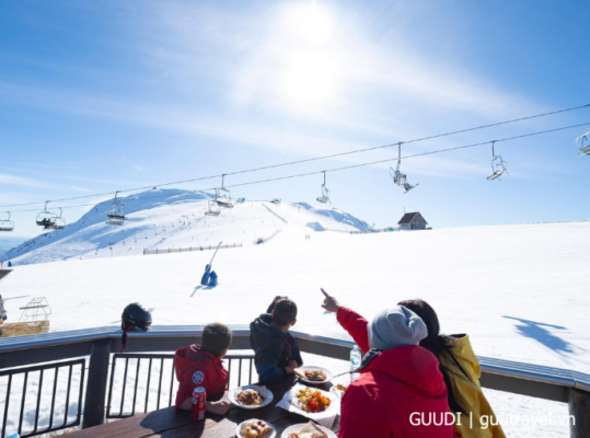 Đoàn dùng bữa trưa tại nhà hàng địa phương.Tại đây, Quý khách có cơ hội trải nghiệm ngồi chairlift (cáp treo không bao kính) băng qua các sườn dốc ngắm nhìn khung cảnh núi non trong màn tuyết trắng xóa tuyệt đẹp. Tự do